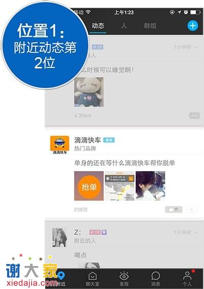 (1)、点击率高,点击成本低。原因一方面是因为用户量级大,3亿用户;另一方面与他的受众有关系,偏年轻化的用户群体,敢于尝试,喜欢新鲜流行的事物。