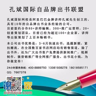孔斌国际网校是阿里巴巴金牌讲师孔斌先生创立的,具有10年的自品牌出书业务经验的公司。目前签约合作80+讲师编辑,300+推广运营师,20+创意策划团队,目前已经帮助100+企业家,培训师等出版策划了上百本畅销书。本公司出书优势是:3-6月快速出书,选题新颖,紧扣潮流,在全国数百家书店网店均有销售渠道,除了出书外,还为广大出书客户提供新闻推广,视频制作,微营销推广等全网推广服务,出书花小钱,为你做宣传!要了解我们更多的,可以百度:孔斌国际。