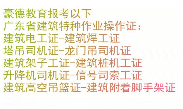 为了规范管理建筑行业从事特种作业的从业人员,提高安全生产技能减少意外事故的发生,强制要求必须考证上岗,面对建筑行业的严格要求,考建筑电工的人在不断增加,是需要考取特种作业者为关心的问题。深圳豪德职业技能培训中心是你考取建筑电工证报名机构,每月定期组织报考人员,随时接受报名,就近安排从而实现短时间内考取,建筑电工广东建筑电工证,建筑电焊工,建筑架子工,塔吊司机,塔吊指挥,塔吊信号司索工,施工升降机,塔吊装拆工,升降机装拆工等特种作业操作证以及建筑8大员。只要在建筑施工领域,均联网认可。深圳建筑电工证,各地通用。求职就业基本没问题,考证的薪资待遇还高些的,一站式完成考取建筑施工特种作业操作证任务考证上岗。详情咨询深圳豪德教育培训中心余老师。