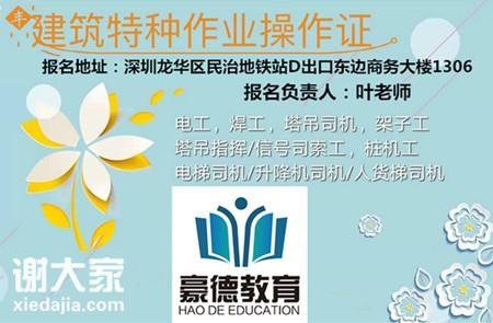 更多关于深圳市广东省住建厅颁发的建筑塔吊司机证(起重机起重司机证)报考及办理时间、地址、条件、要求、费用、流程、步骤、程序及所需资料、材料及证件等,欢迎咨询深圳豪德培训中心叶老师