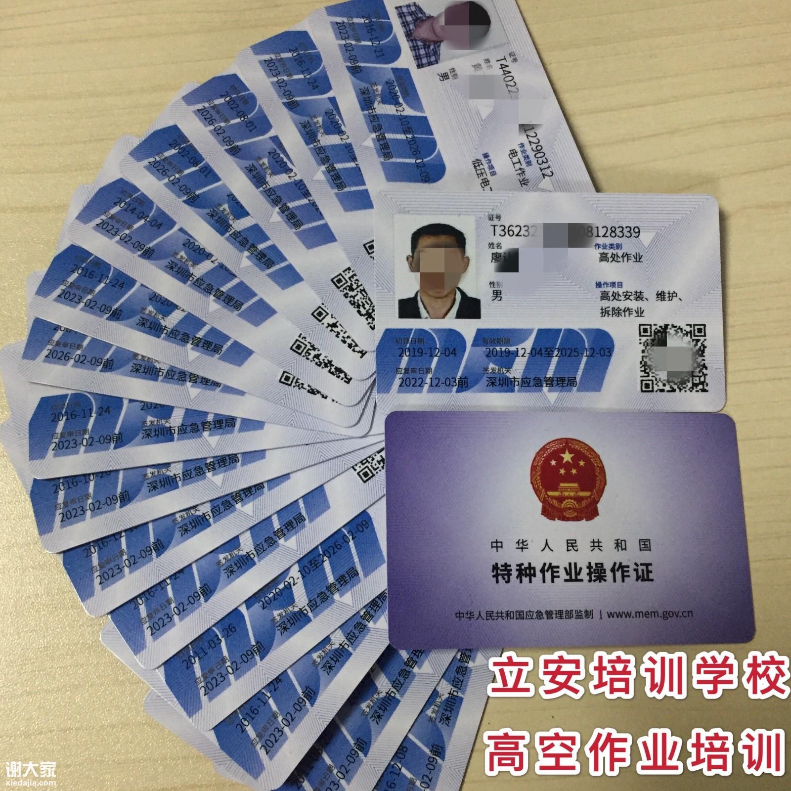 深圳市龙岗区立安职业技能培训学校,专业负责年审电工证、焊工证、制冷证、高空作业证,叉车证,电梯管理证,锅炉工证,压力容器证,起重机证,电梯维修证,特种设备管理等培训考证。