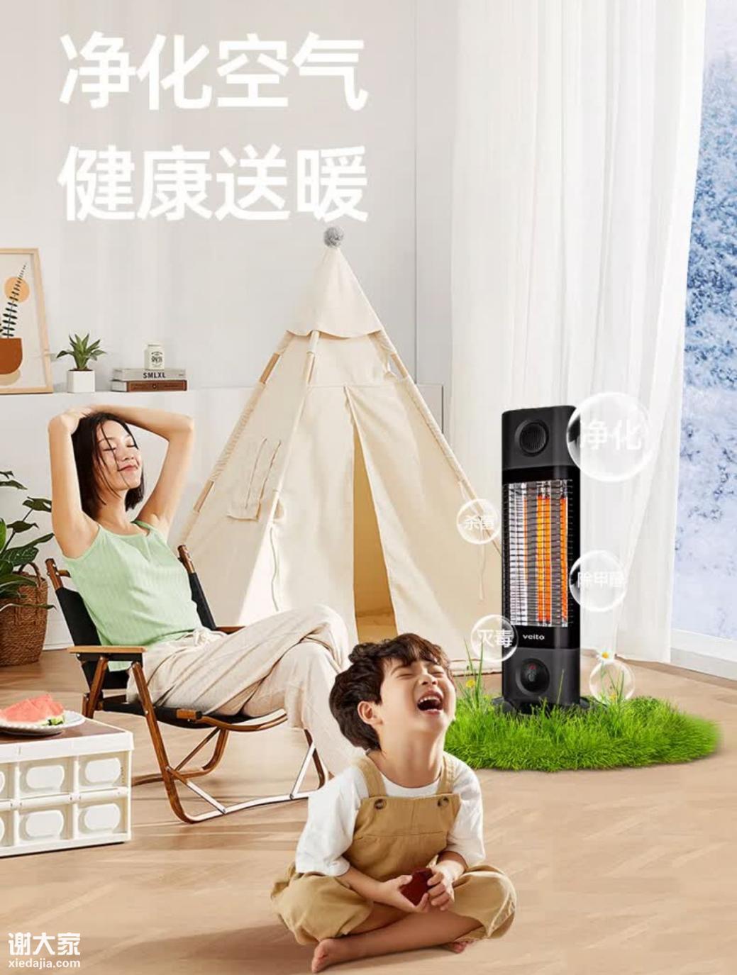 冬天关窗取暖的问题是——空气闷、二氧化碳浓度高、家人久坐客厅容易“困、乏、气闷”,但开窗透气会让热量流失,又不现实。但伟而特红外取暖器开门窗也能取暖,热量穿透性强,一边呼吸新鲜空气一边晒太阳。不仅如此它兼备空气净化与消毒功能刚好解决了这个矛盾,能在不开窗的情况下净化空气,保持冬天客厅空气清新,不会出现“热闷感”。