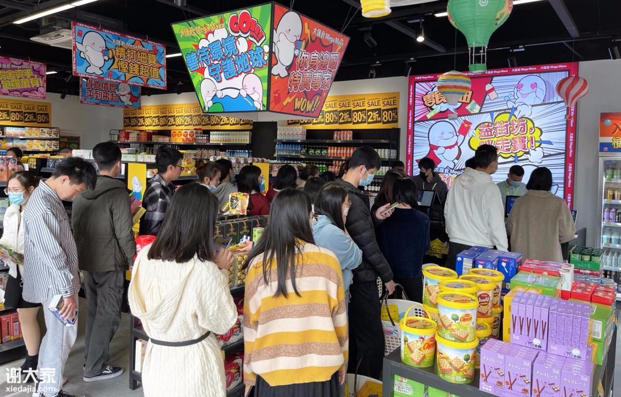 人排队结账。看来,大汇仓这个