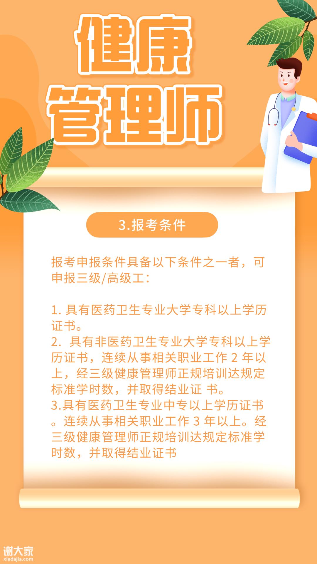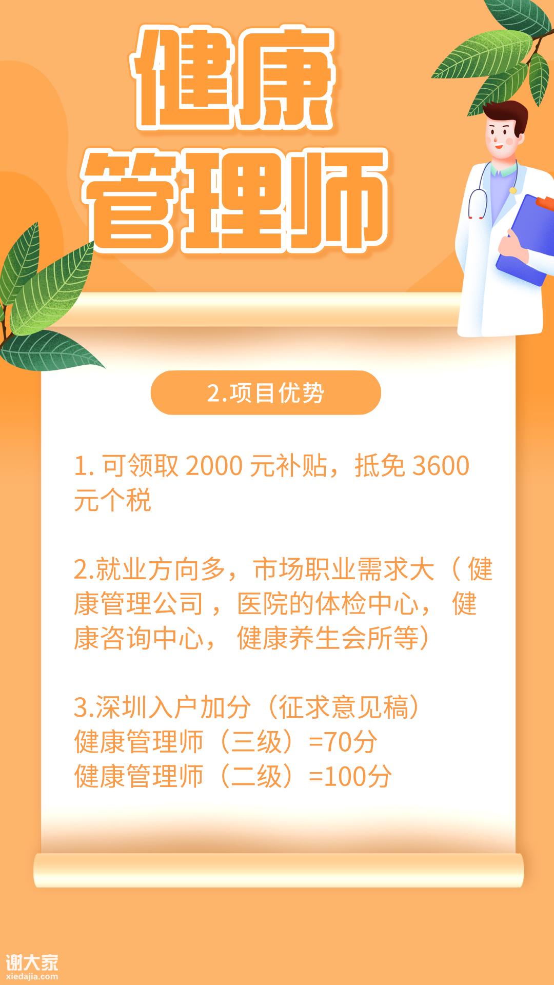 2.报名健康管理师可到社保中心领到2000元技能提升补贴