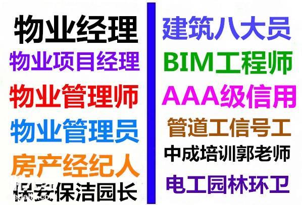 清远物业经理项目经理物业师清洁建筑八大员装配式工程师培训