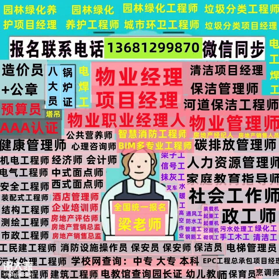 东莞保洁管理师园林绿化城市环卫垃圾分类工程师报名物业证消防设施操作员会计证