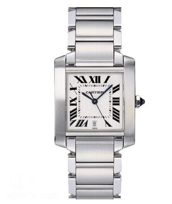 卡地亚山度士100.W20106X8采用卡地亚自家生产的076型自动机芯,全钢表壳搭配黑色鳄鱼皮带,白色面盘。复古罗马数字时标,蓝宝石玻璃镜面,表冠镶嵌一颗多切面合成尖晶石,防水深度100m。