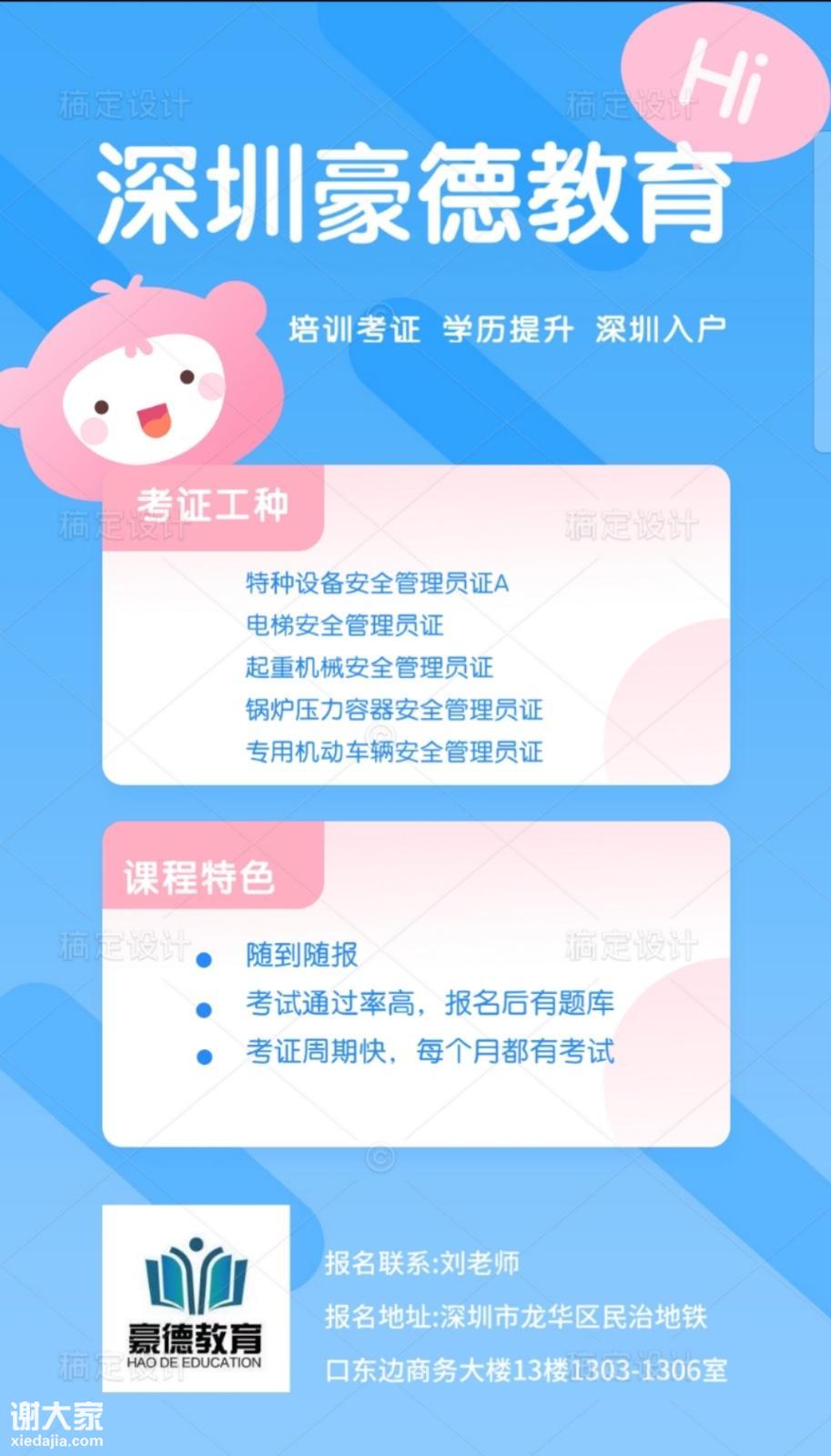 学校:深圳豪德教育培训学校