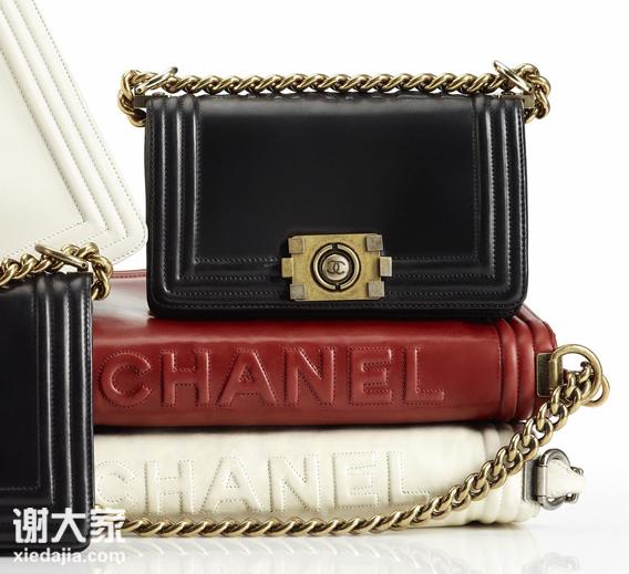 香奈儿boychanel(Chanel)的新款BoyCHANEL手袋令人一见倾心。它的魅力独具一格,与传统女人味十足的手袋截然不同。那亦刚亦柔的设计,绽放出独特的中性吸引力。这一系列包包外形来源于可可·香奈儿(CocoChanel)女士年轻时使用的狩猎子弹夹,Boyhanel包包采用优雅简约的优质小牛皮,质感细腻光洁,推出多款不同尺寸与设计:从小号手拿包,到特大号手袋。无论暗红或深黑还是饱满的灰色、铅绿抑或亮象牙色,所有色调都细致微妙,具有慑人之美,弥漫着复古的高贵气息。BoyChanel线条简洁的设计处处玩味着香奈儿经典元素。它低调内敛,略带男孩气质,可以两种方式自由携带,个性十足的金属链与大号圆形链环衔接,散发着复古感的古铜色金属质感;矩形翻盖以车缝线饰边,在手袋顶侧CHANEL六个字母微微凸浮;包扣的设计灵感源自结构主义启发,兼具银质金属和古金器的色泽,双CLogo的锁扣则位于包扣正中,引发对传奇香奈儿的无限渴望。这一系列包括大号Tote包包、链条挎包、钱包等款式,颜色上除了香奈儿(Chanel)经典的黑色与白色,还有大气稳重的灰色和火焰热情的红色可供选择。