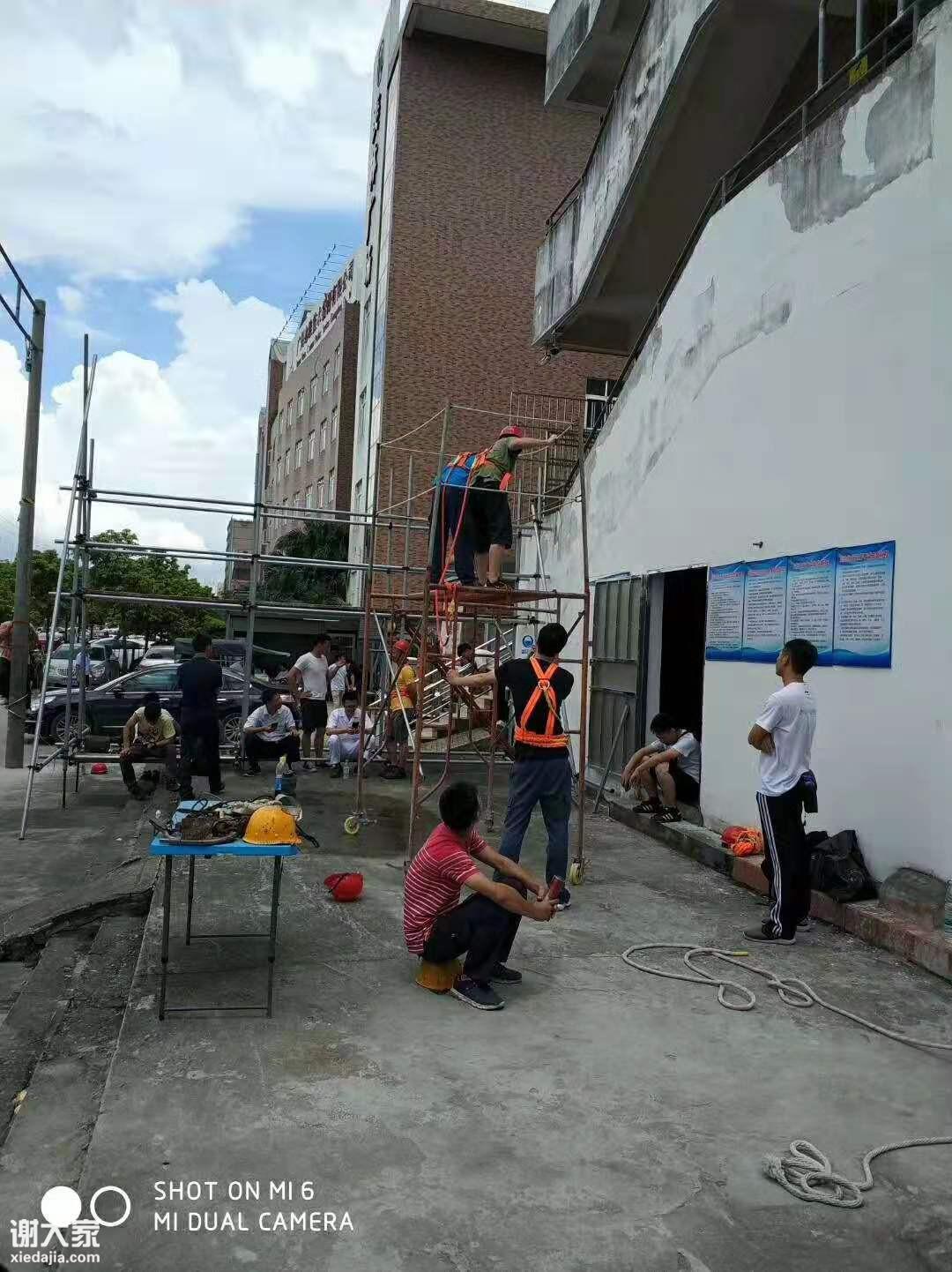 实操有常识的人都知道,无非就是搭一下脚手架,邦个安全带、站在升降机上面而已