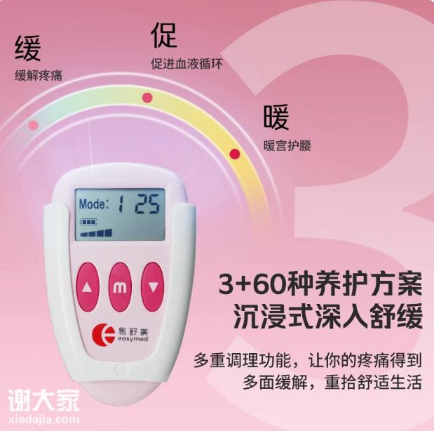最近我开始使用一款专为缓解痛经设计的止痛仪——易舒美痛经止痛仪,它彻 底改变了我的经期体验。与普通的热敷仪不同,这款设备采用了更为先进的TENS技术。它通过皮肤表面的电极片,向人体输出低频脉冲,刺 激身体自然产生内啡肽——这是我们的“天然止痛剂”,能有效减轻疼痛感。