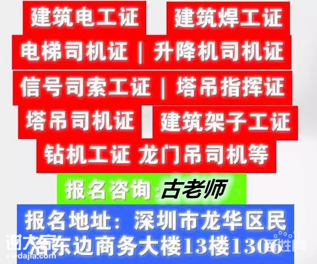 建筑行业工地上用的特种作业操作证深圳开班培训工种有:建筑电工证,建筑焊工证,建筑架子工证,建筑桩机工证,建筑塔吊司机证,建筑信号司索工证,建筑施工升降机司机证。