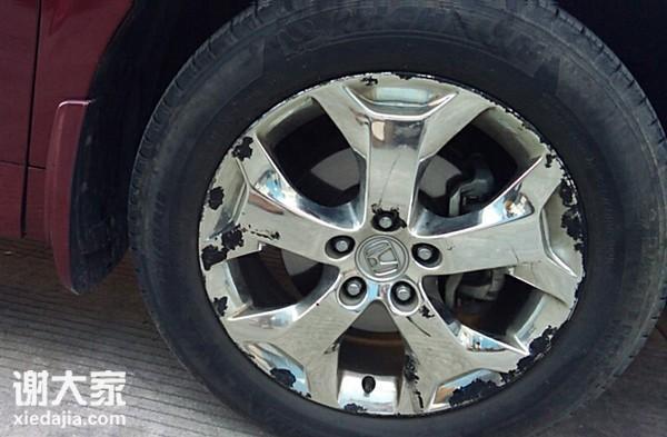 (延伸一下)这个车主就是想给轮毂喷一下漆膜,结果用了一段时间就成这样子了,要是想给轮毂修复改色的话,还是找一些靠谱的地方,轮毂烤漆改色与喷漆改色的效果真的是天差地别。