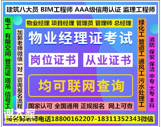 广西高级职业经理物业经理项目经理城市环卫管理师保安保洁园长信号工哪里考