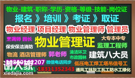 招生老师:郭老师全国报名热线18800162207,微信18311352343物业管理证书是物业公司从业人员上岗证书,证书全国通用,面向全国范围招生。