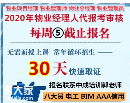 物业经理费用1200元学员先交600元证书下来后学员查完证书补齐余款600元,如果有亲戚朋友在北京工作的学生可以委托他们来我招生办事处代交报名费和报名资料。