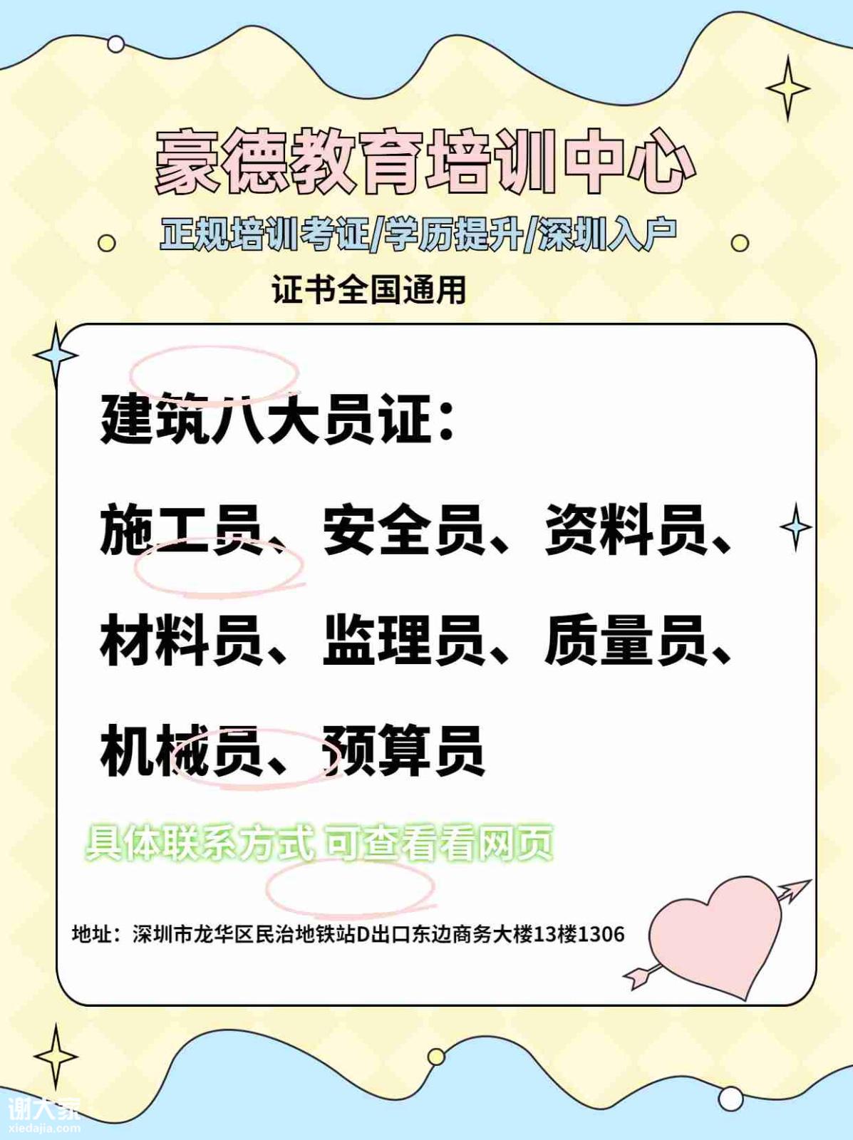 年报考及办理建筑八大员证,就来豪德教育报考培训中心,我们靠谱,快速报名考试拿证,详情请咨询豪德教育