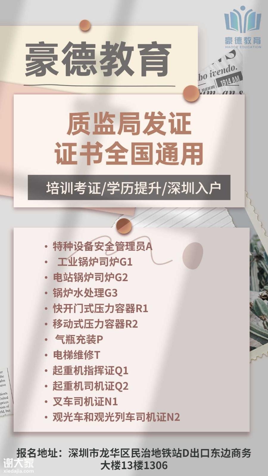 学校:深圳豪德教育培训学校