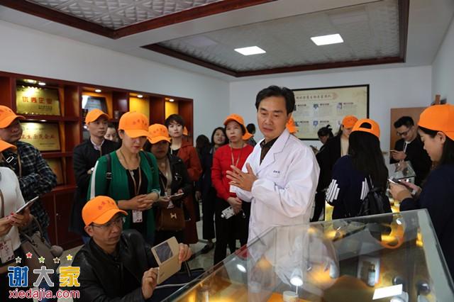 在展览室里面,有一位身穿白大褂的老专家在向我们一一做讲解,据旗黄百草工作人员所知,原来他是谭新国谭老师,是旗黄百草专家团队的其中一名研发专家,也是世界保健品专业委员会理事。