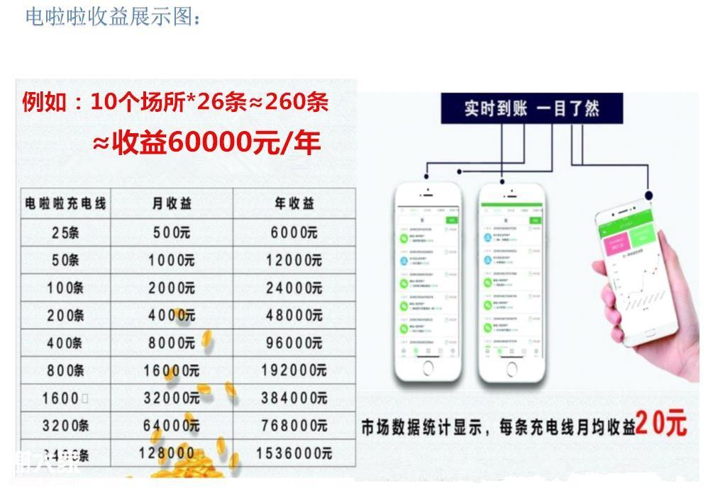 100条共享充电器。按照至少每天有10个人使用。那么一个月10*3*30=900,这样算下来两个月的样子就回本,那么接下来就是持续稳定收入的了。