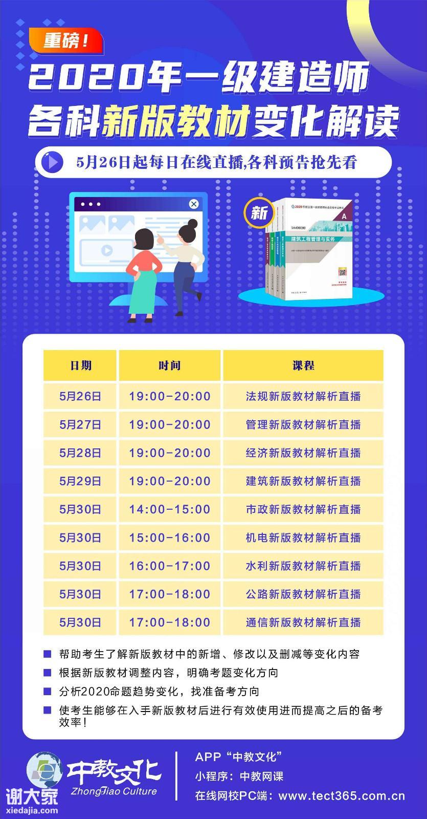 重磅消息:2020一级建造师各科新版教材变更对比直播免费预约中!