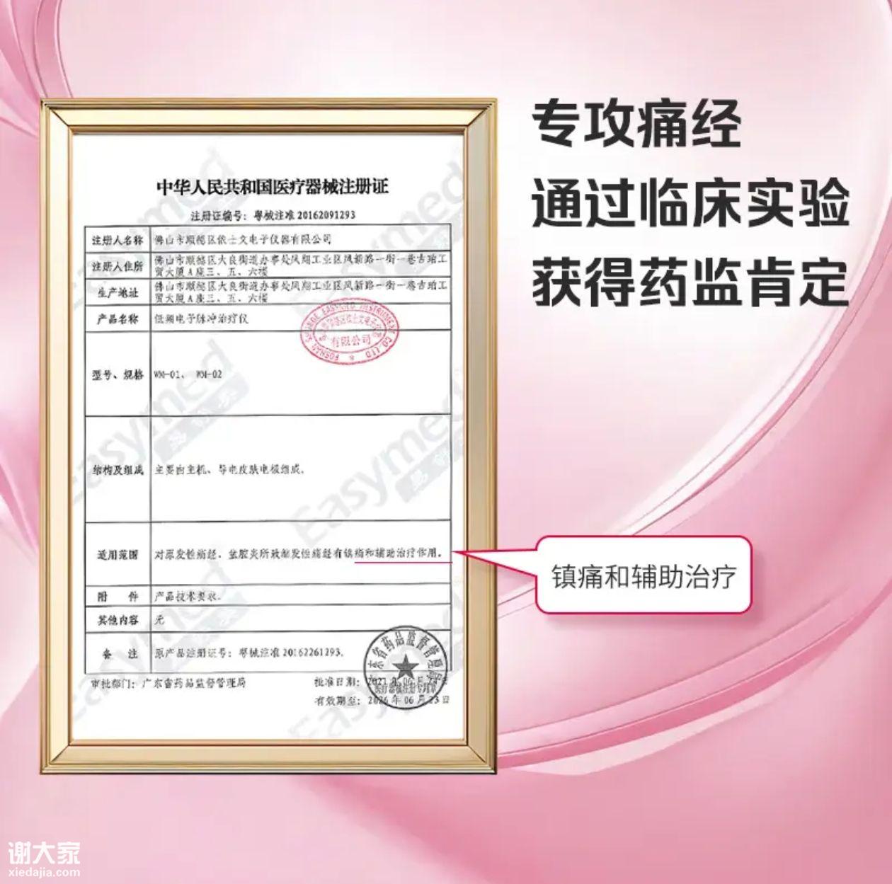 作为深耕女性健康20余年的专业品牌,易舒美痛经止痛仪不仅有纟芍监局注册证,还通过美国FDA、欧盟CE等国际认 证,机身小巧如口红,便携隐形,上班、通勤时贴在腹部就能使用,无需吃纟芍、无副 作用,备孕、哺乳期女性也能安心用。